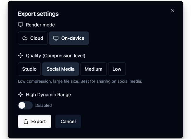 That said, this feature really pushes hardware to its limits. On weaker machines, local renders may be very slow or may not complete at all, so keep that in mind when rendering from the app. We'll fix that. So we’re keeping a close eye on bug reports.