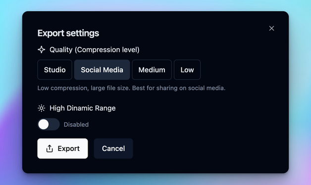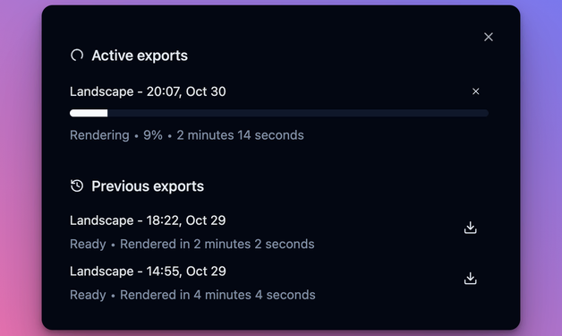 - Cancel exports: New cancel button lets you stop unnecessary exports instantly.