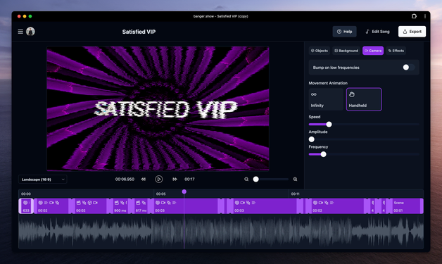 Unlike other video editors, Banger.Show allows you to manipulate not just the X and Y positions, but also the Z axis. This means you can place objects at different depths:
